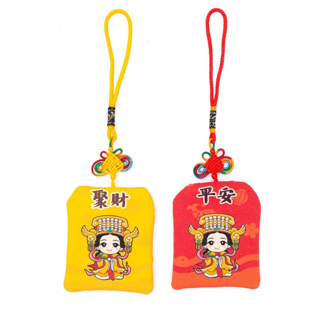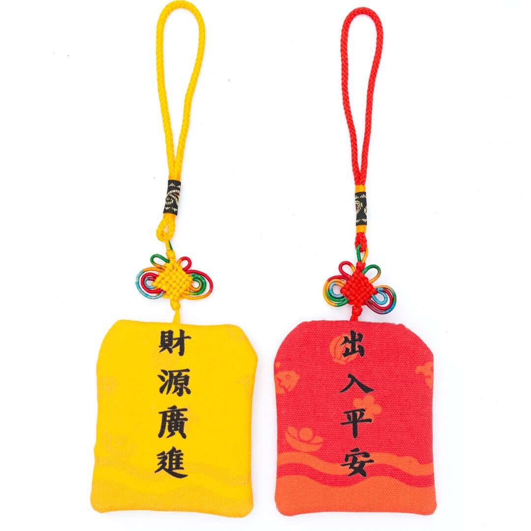 本商品為 布料材料組,圖案共 紅/黃/紫/綠/藍 五種, 可用於製作平安符袋、車用吊飾、祈福小物等。