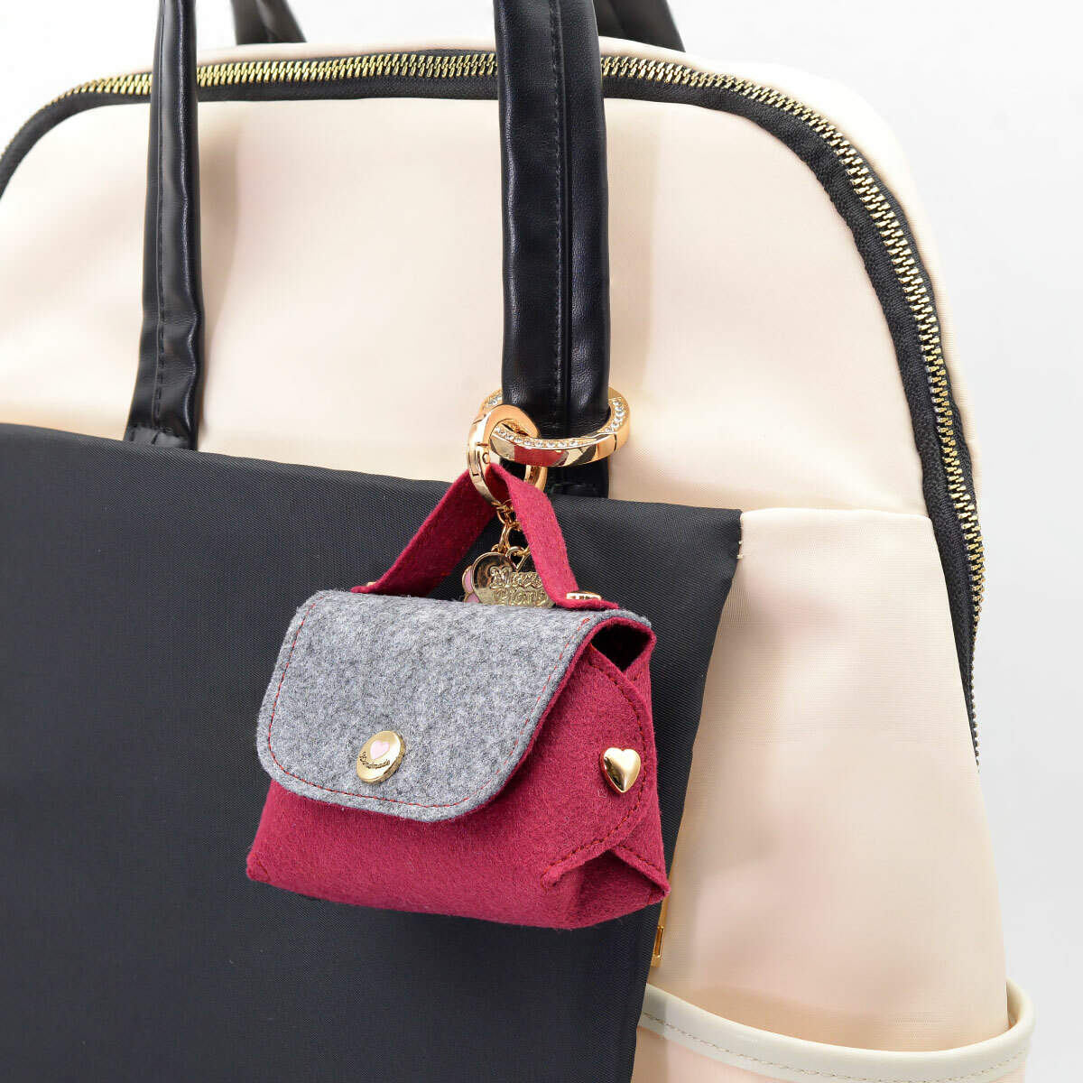加上彈簧釦,可掛在包包上