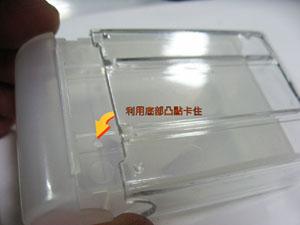 此盒子固定方式主要是靠背面2個凸點卡住塑膠盒,