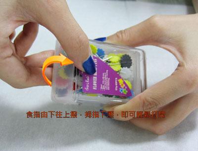 輕輕從盒子頭端往上提起,再往前拉開即可。