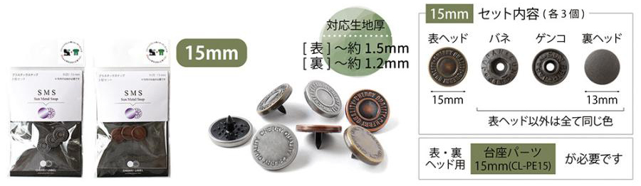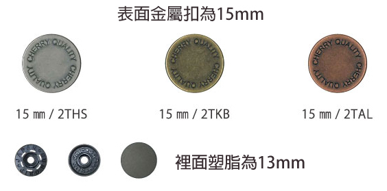 看起來像金屬按扣的塑料按扣。與以往的黃銅製按扣相比,重量減輕了1/2!