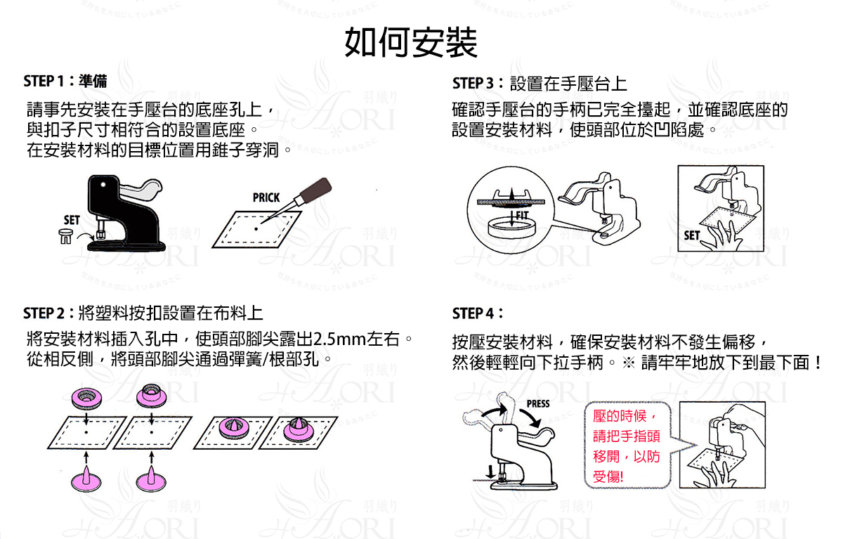 ▴塑脂按扣很小,請注意不要誤吞或踩到它們。
