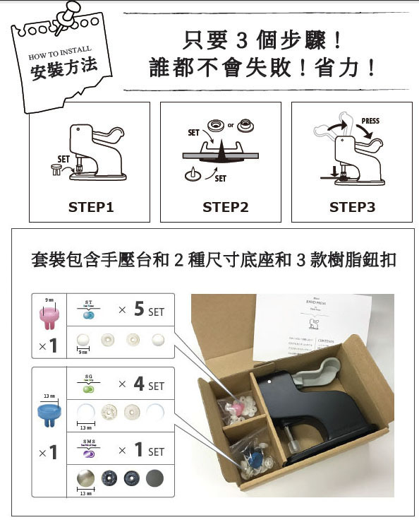 這種手壓台和塑料按扣家庭也可實現"專業規格"!環保購物袋或口罩盒等日常生活中的身邊的事物也僅此一項就大變身!!