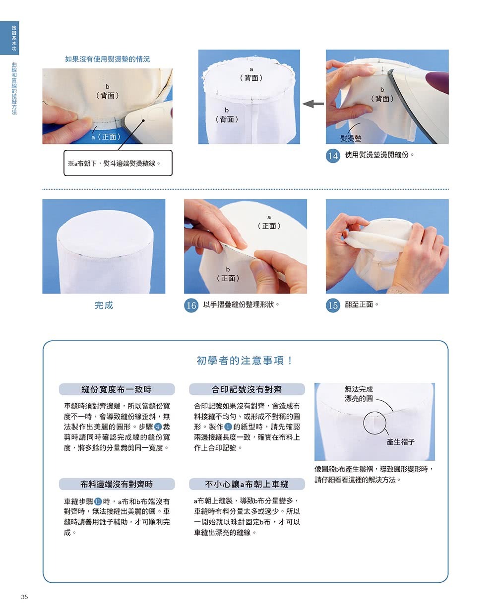 對於有這些疑問的讀者們,這本書從基本車縫方法、熨斗的使用方法、或是一般人搞不懂的裁縫工具與基本知識等開始介紹。