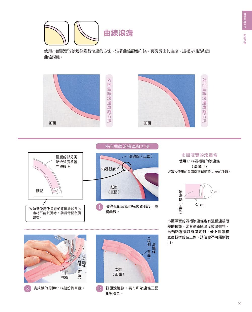 內凹曲線滾邊車縫方法