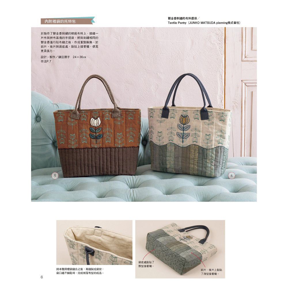 本期的手作包特集中,滿載縫製美麗包型的祕訣,不論是旅行、美術館巡禮、或逛街購物……等,不妨一邊想像使用的場景,一邊製作。