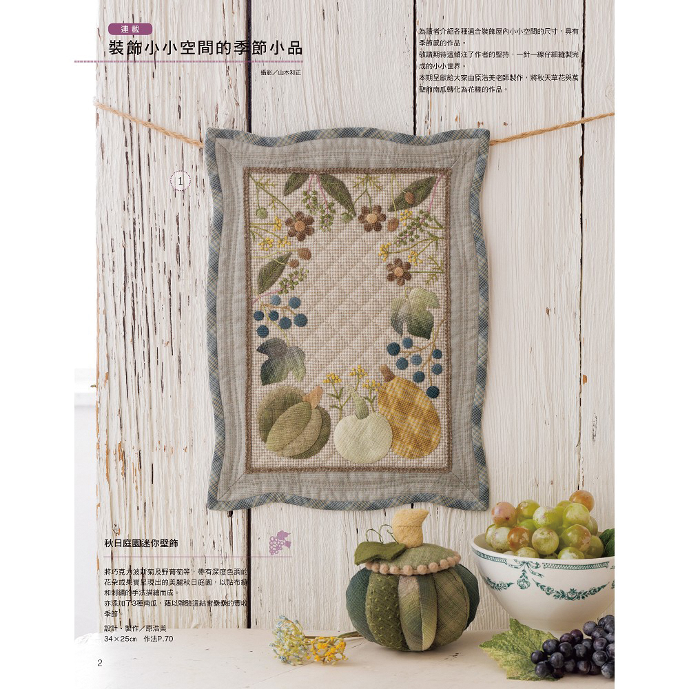 適合在跨秋冬兩季使用的毛茸茸刷毛切割拼布,或是聖誕節的家飾小物,以及圖騰白線刺繡拼布也都相當符合節日氣息,請透過拼布一同體驗創作意願高漲的秋日風情。