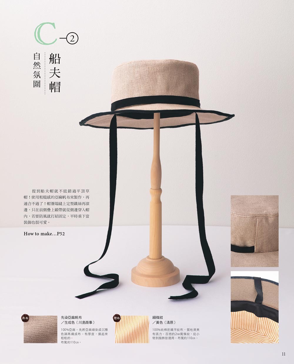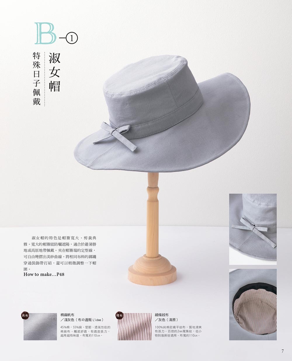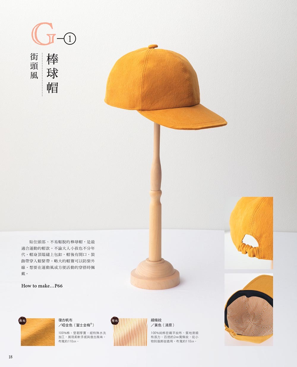雖然有許多弧度曲線,要製作出滿意的帽子,可能一開始並不容易。但帽子的製作流程基本上是大同小異的。在實作中磨練各種技巧,自然地就能縫得整齊又漂亮!你也來挑戰看看自己製作的樂趣吧!
