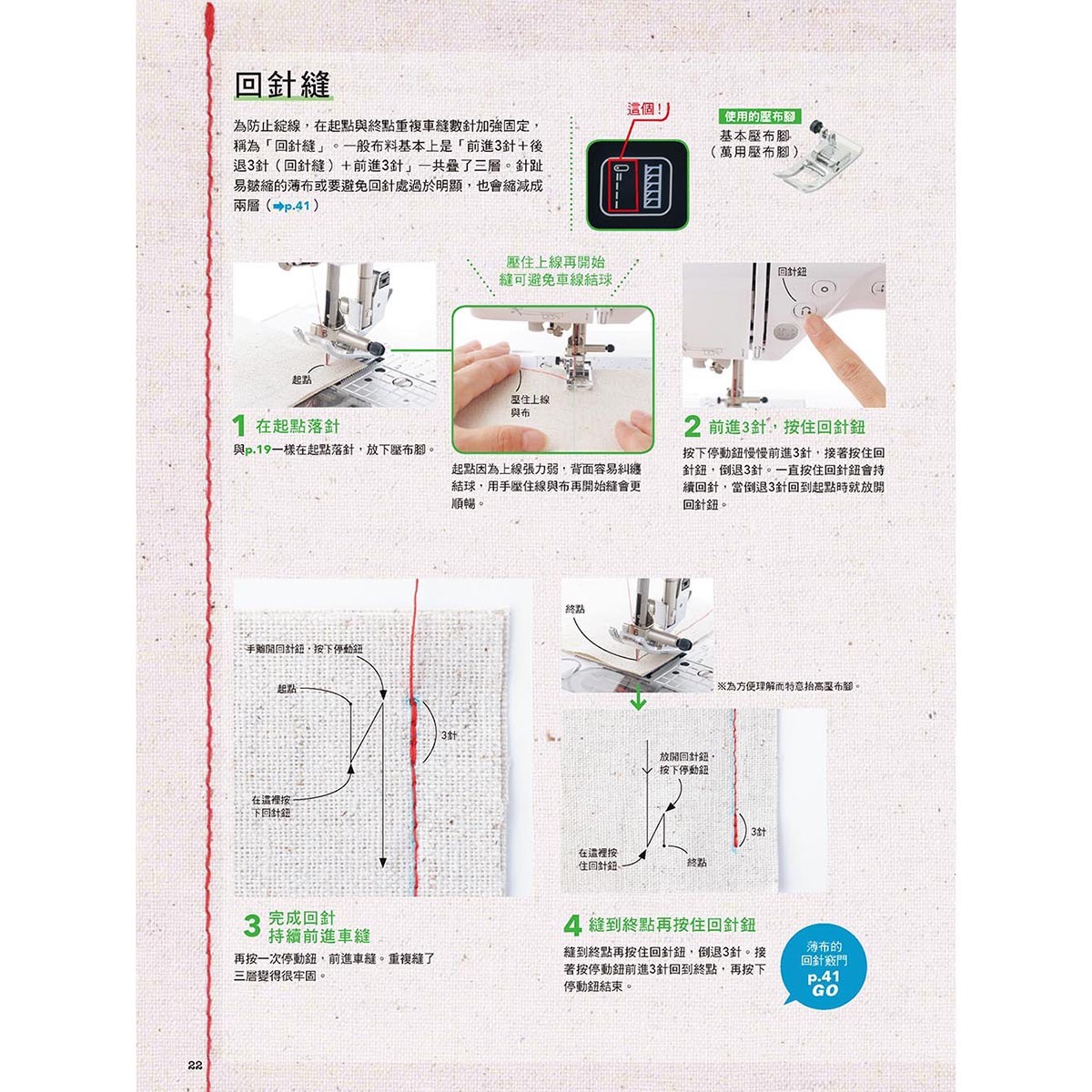 車縫前的準備/進行試縫/車縫直線/回針縫/車縫轉角
