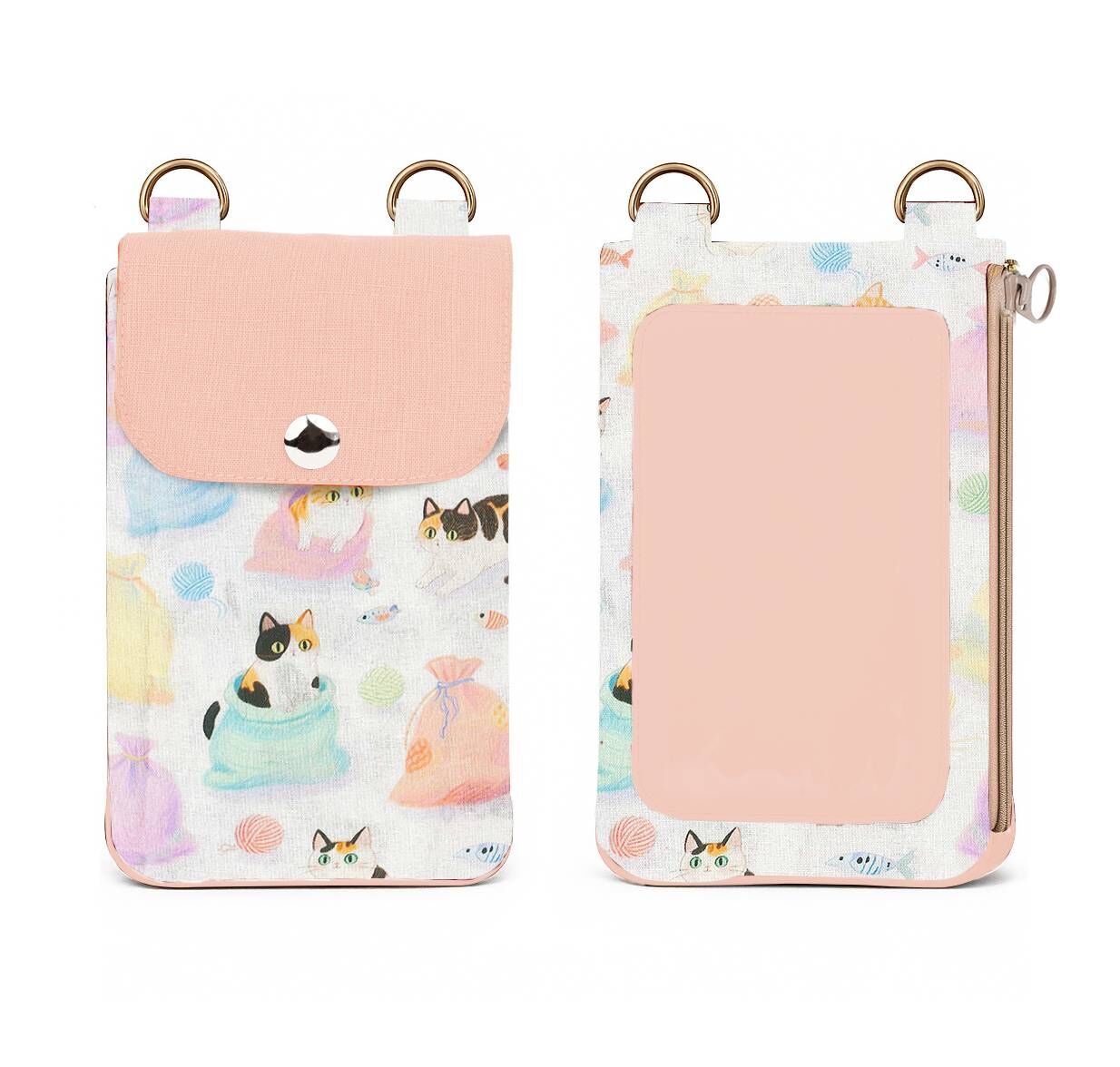 小巧的袋身展開後,內側有著多個卡片/鈔票夾層,還有著拉鍊口袋,方便攜帶各式隨身物品。