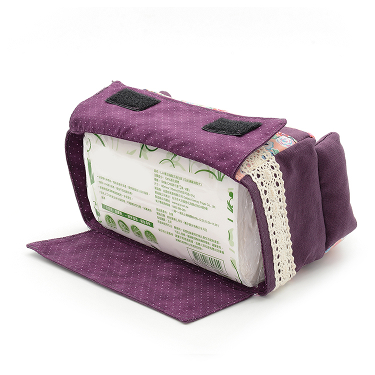 在袋底運用魔⻤氈作為開闔,讓作品製作起來更簡單,而更換面紙套時也更順手。