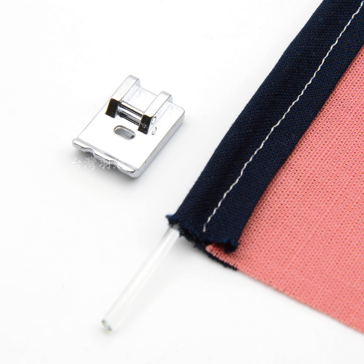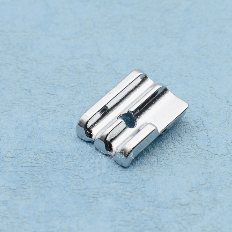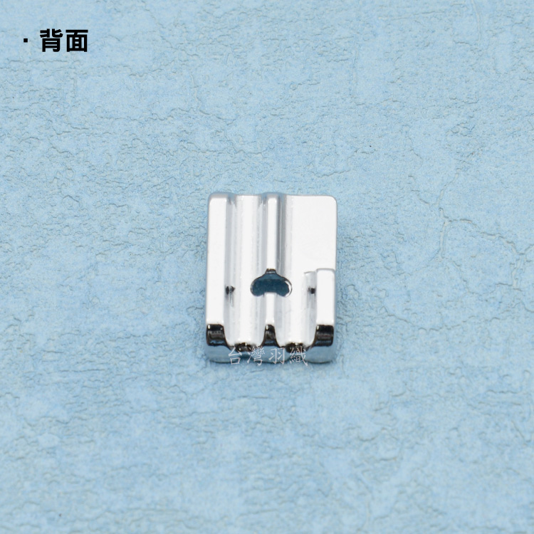 • 專門在車出芽的,相較拉鏈壓布腳,因出芽壓布底部有凹槽,所以在車出芽的時候,能更加穩固,轉彎的曲線也較漂亮.