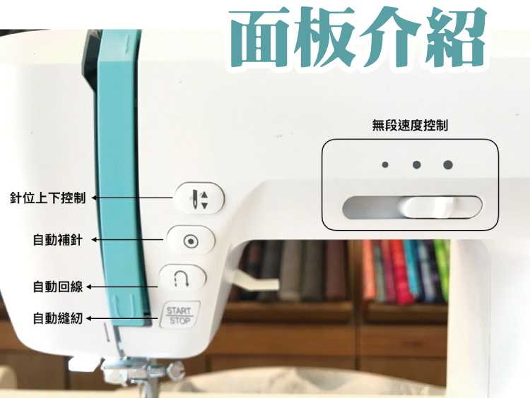 • 可手控及腳控制車縫速度。