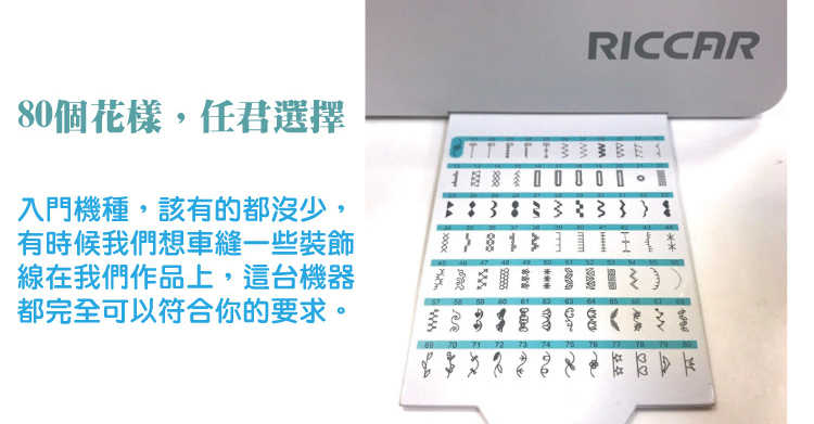• 80種縫紉模樣。