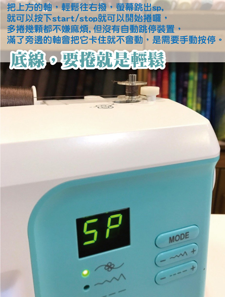 • 水平置梭線輪,可查看下線狀態,確保下線是否安裝好。