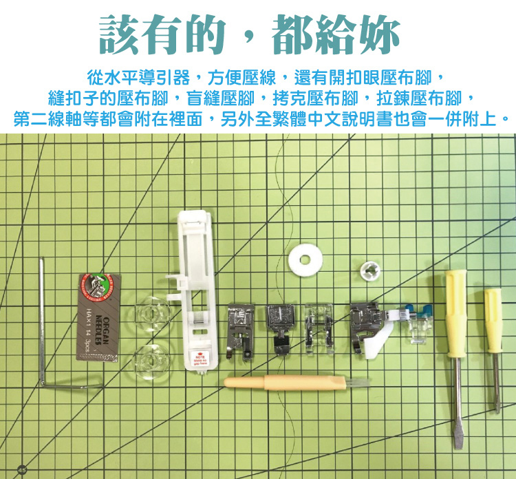 • 一般縫紉、拼布、洋裁皆可輕鬆完成。