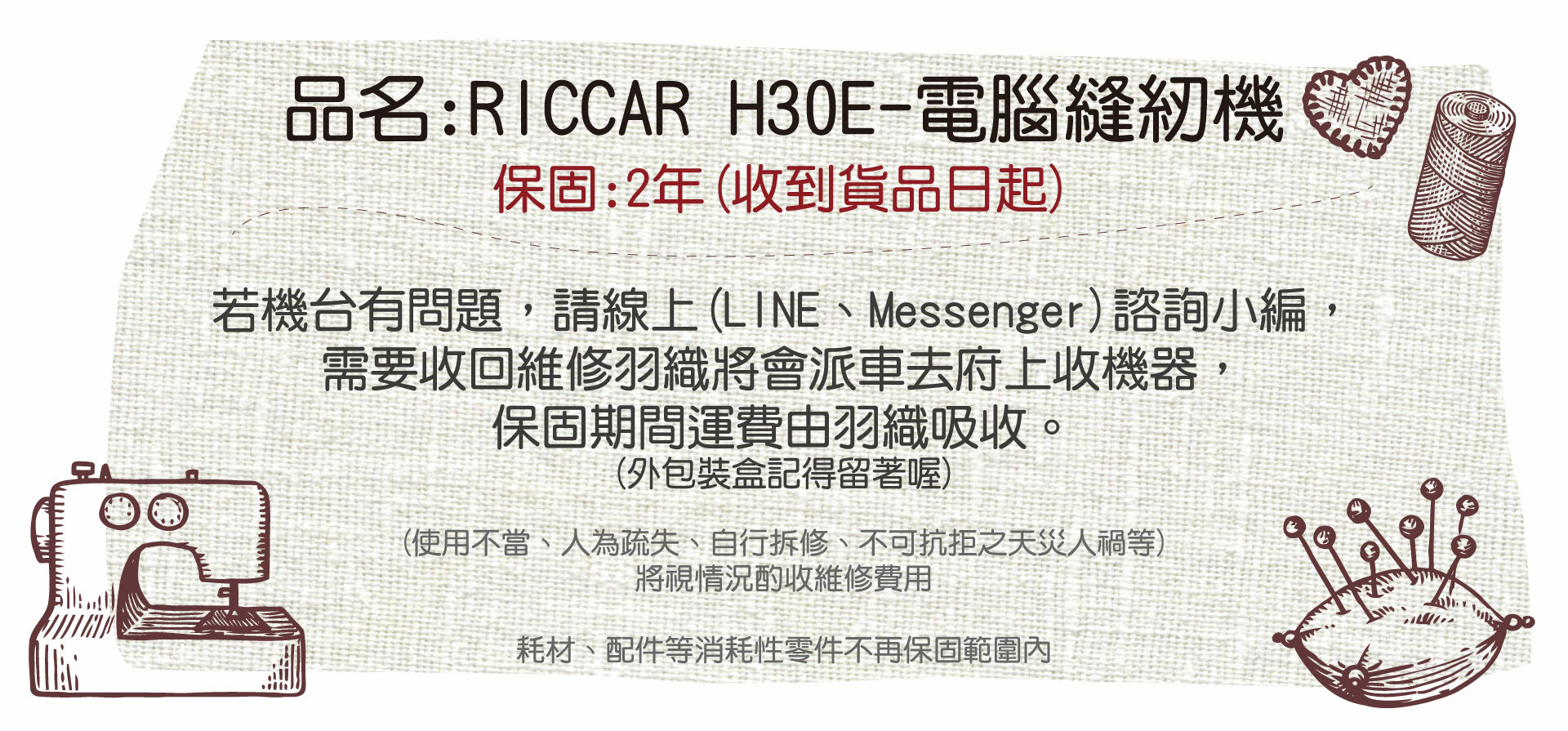 指定商品,買【RICCAR】H30E電腦縫紉機【贈RICCAR梭子*10顆】