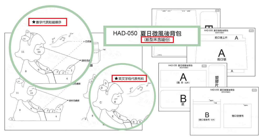 接下來我們就用開箱文的方式,讓妳感受一下收到羽織材料包時候,會是長什麼樣子?夏日微風後背包,目前有分成四個顏色!以下開箱文我就用綠色來做一個開箱介紹喔!四個材料包的內容物都是一樣的喔,只有主布有做更換!