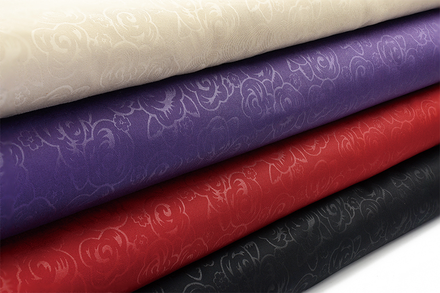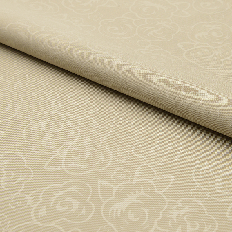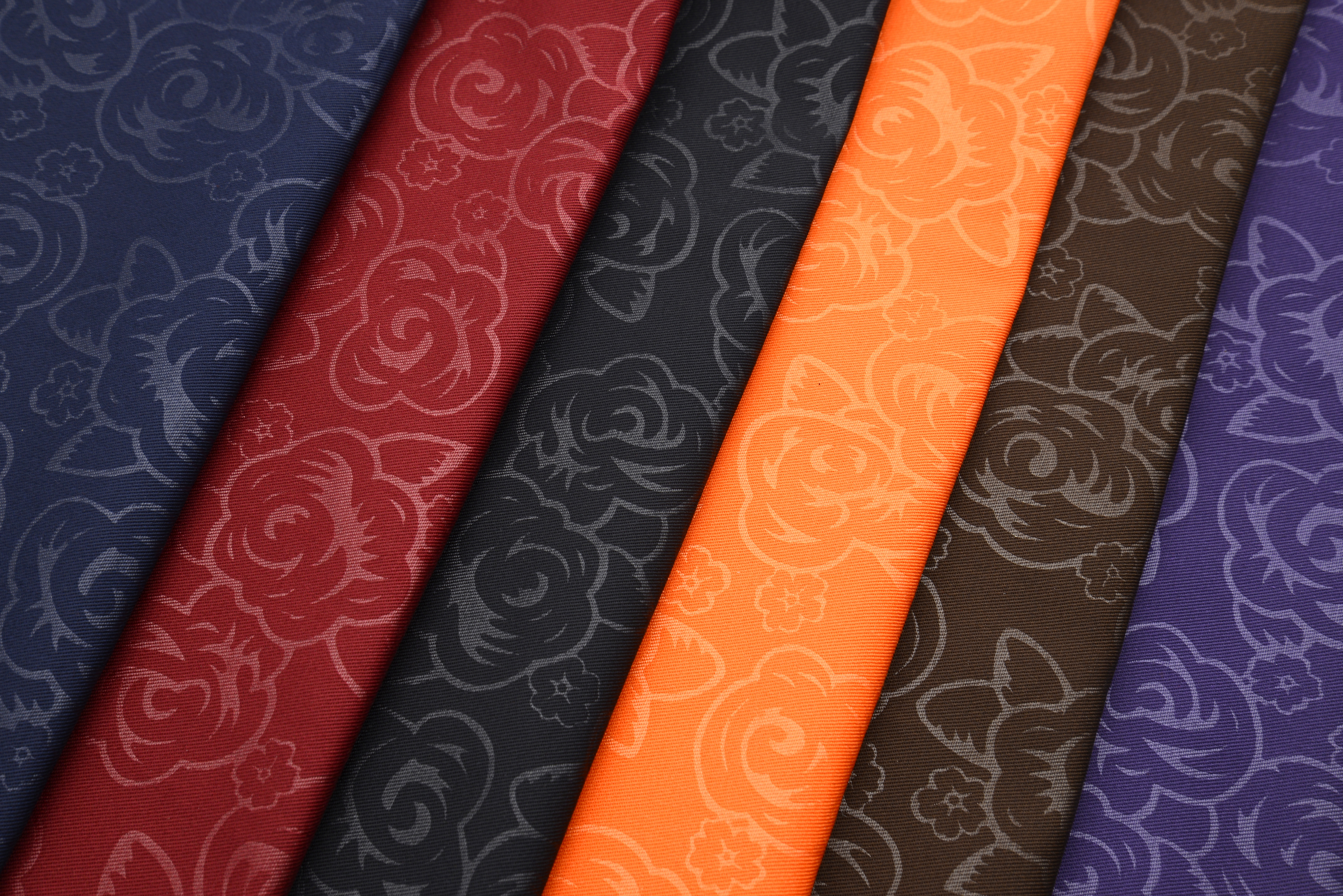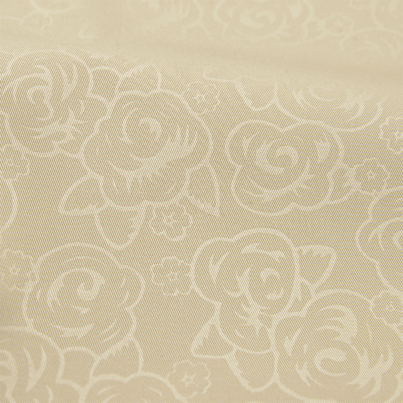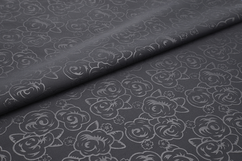 印上花朵壓紋,讓布料有了立體感,在不同光影⻆度下,有著不同的面貌。