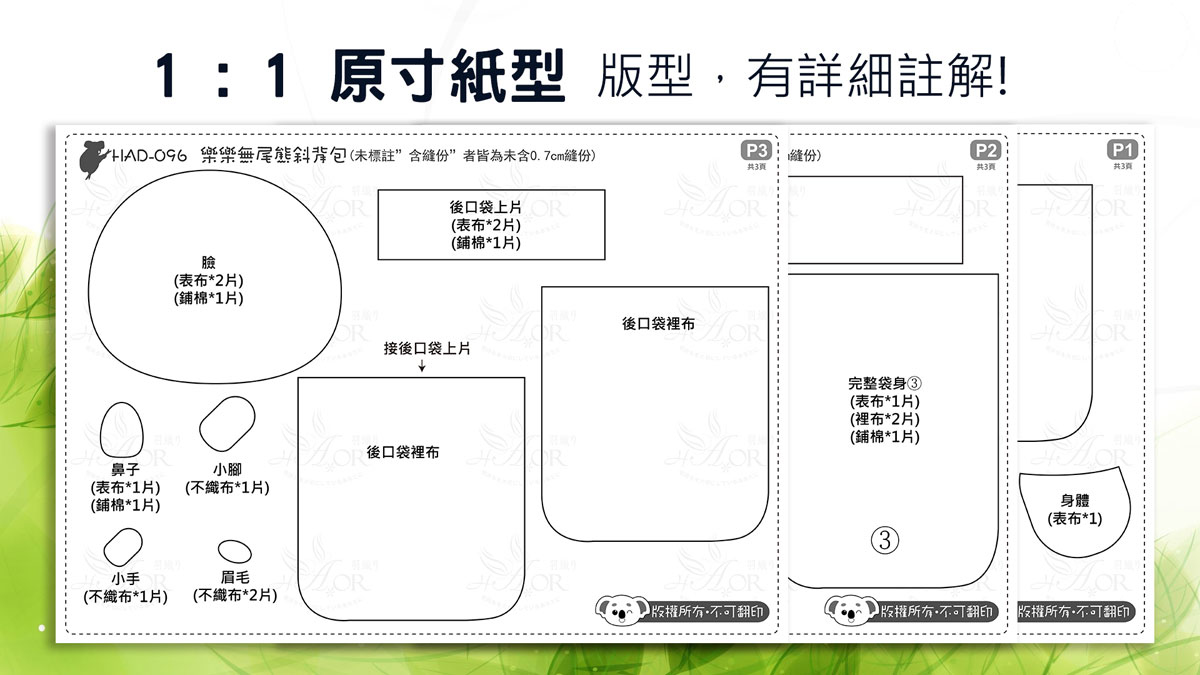 【樂樂無尾熊斜背包-材料包】共三種色系