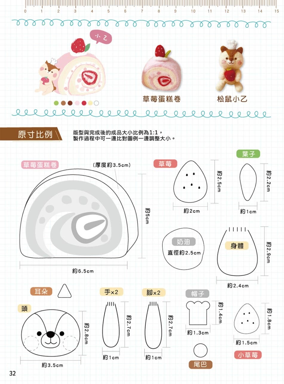 松鼠小乙的草莓蛋糕卷(附羊毛氈超值全材料包套組)