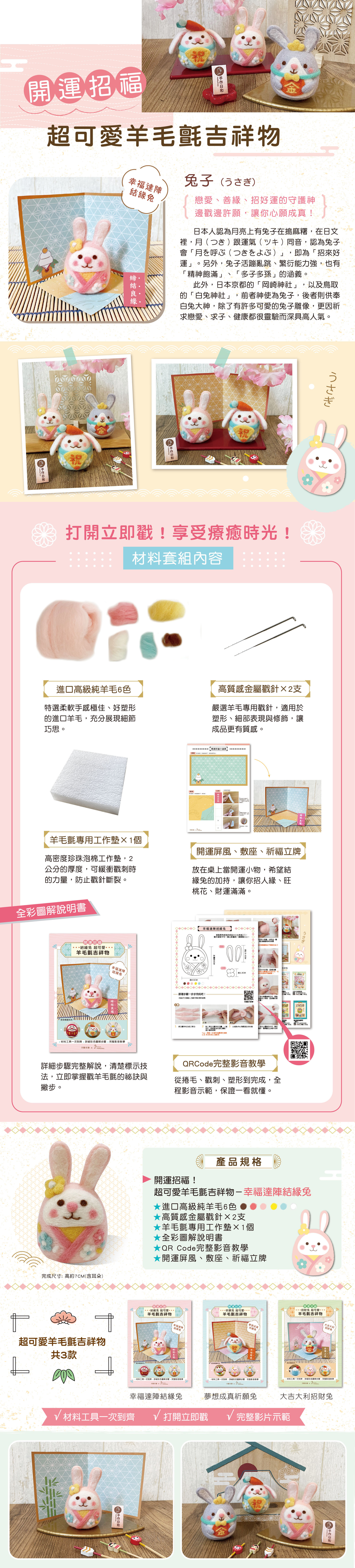 【羊毛氈超值全材料包套組——幸福達陣結緣兔】(完成尺寸:高約7公分,含耳朵)