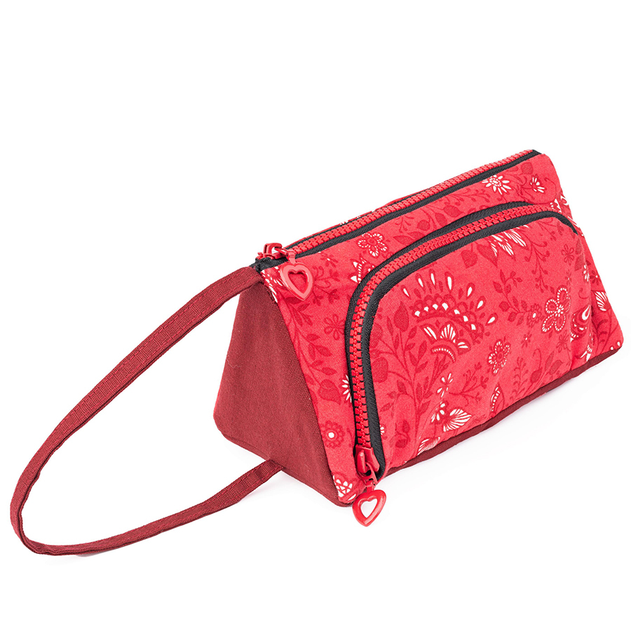 在常見的拉鍊包加上側邊開口。適合用來放置各式工具、線軸。