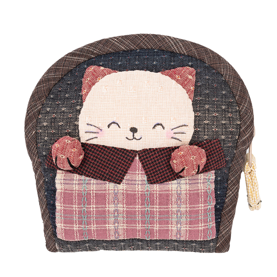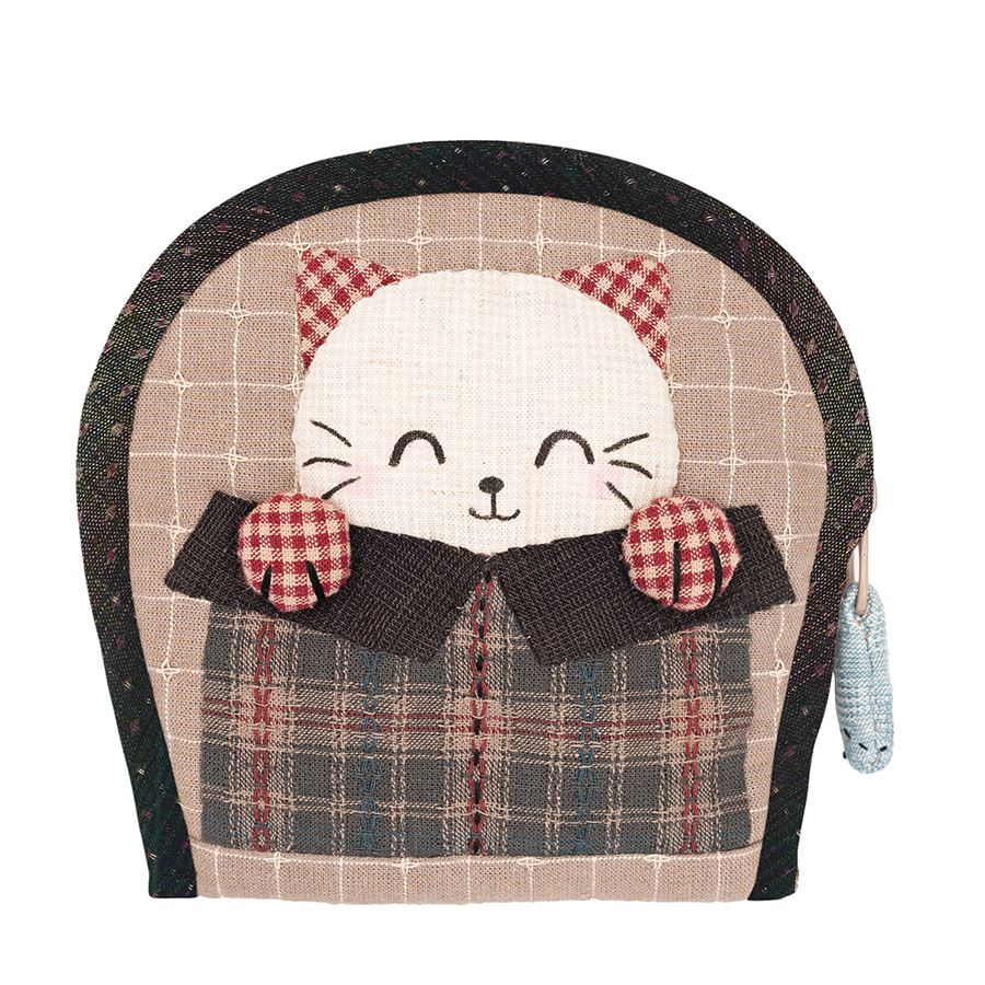 後側則用上簡單的平針縫、繡出可愛的貓掌。拉鍊尾端則有著立體的小魚。 01纖薄袋身下的大容量