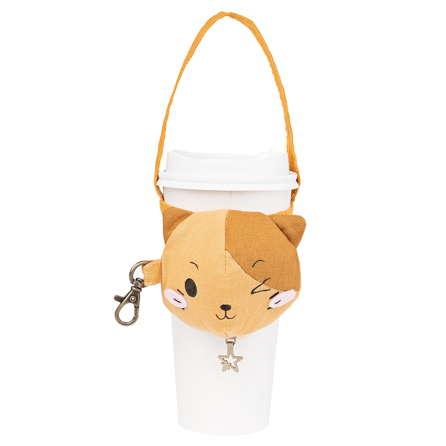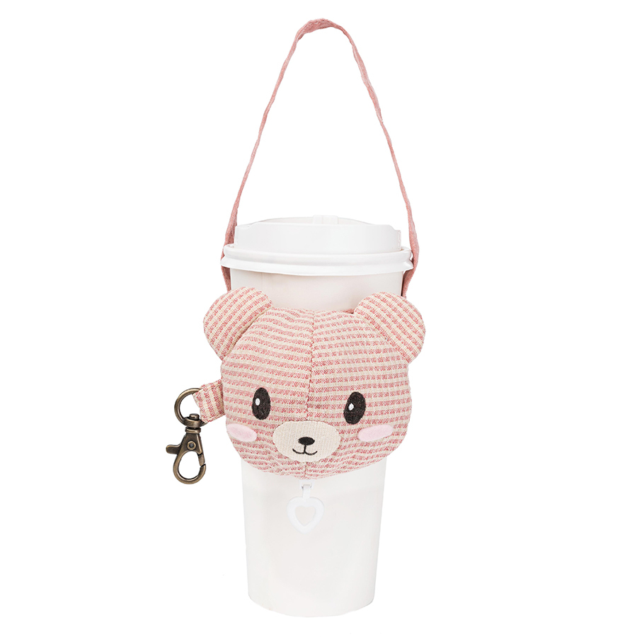 杯套上設計了可愛貓咪及小熊,脖子上有著拉鍊吊飾, 01
