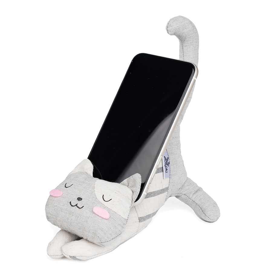 以貓咪動作為靈感,運用版型間的巧妙拼接,設計出能支撐手機的作品。