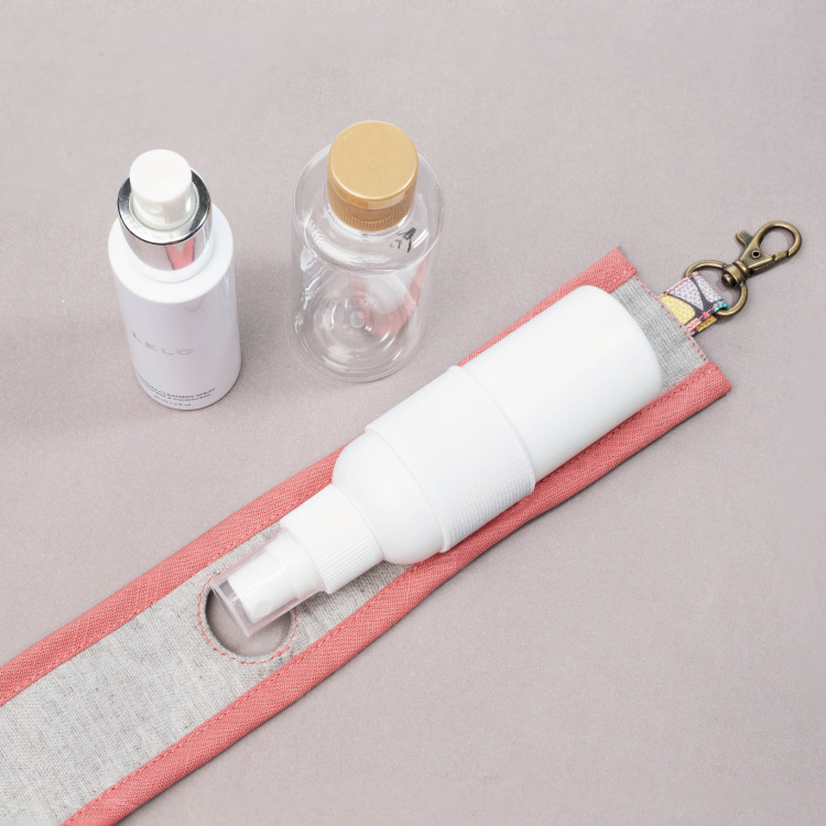 內側加上鬆緊帶,讓不同大小的瓶身也能牢牢固定。