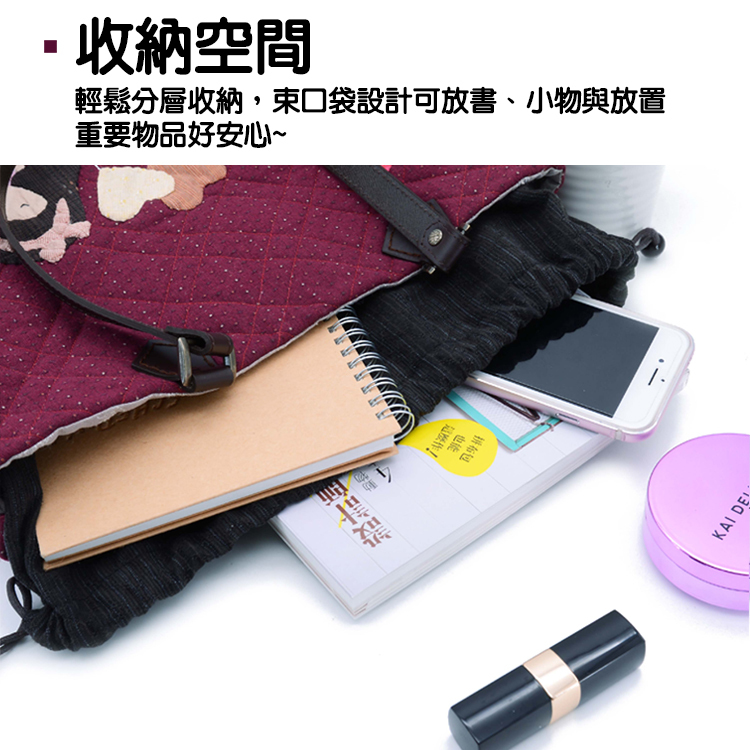 DIY Sewing Kit This bag is different from ordinary shoulder bags. The inner pocket uses a drawstring design, cleverly dividing the space inside the bag into three sections, allowing items to be stored separately.