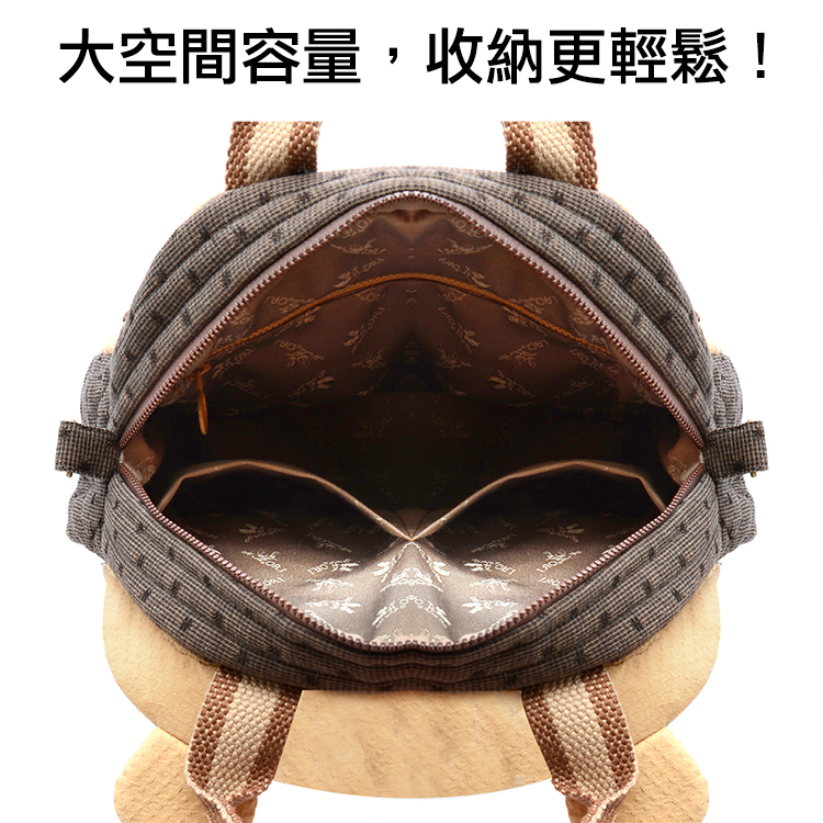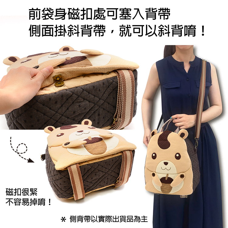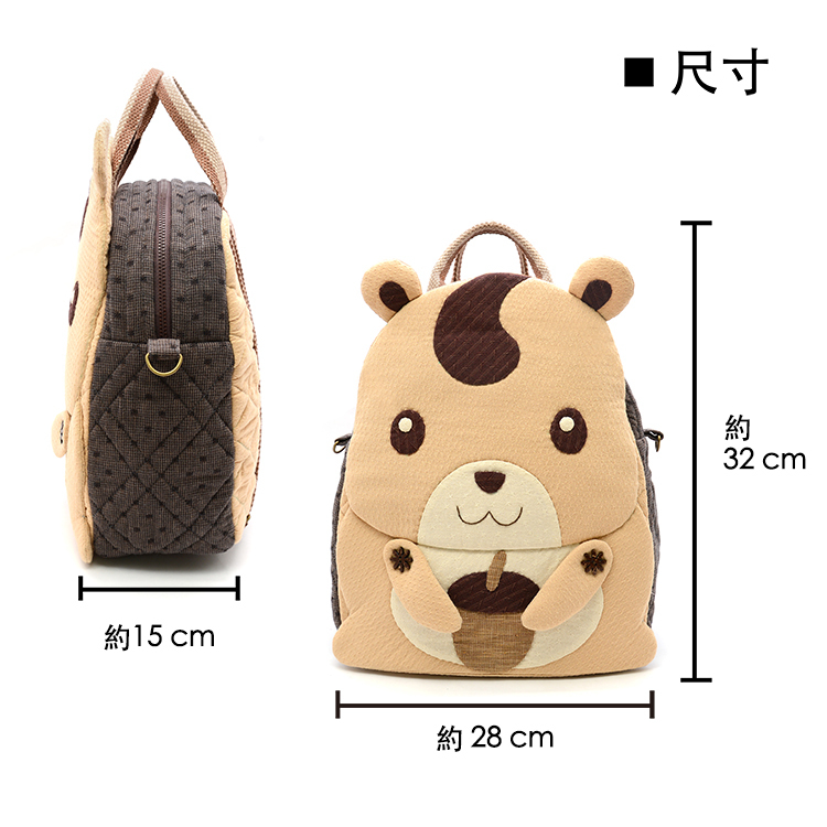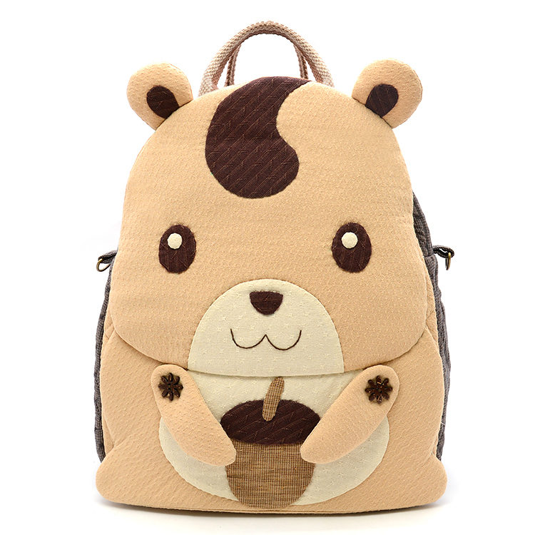 袋身的圖案設計,將森林的好朋友~花栗鼠,天真可愛表情,放置在作品表面上。