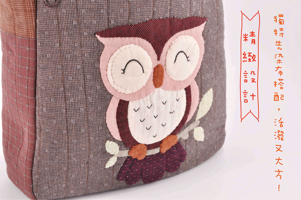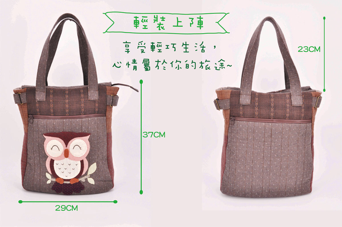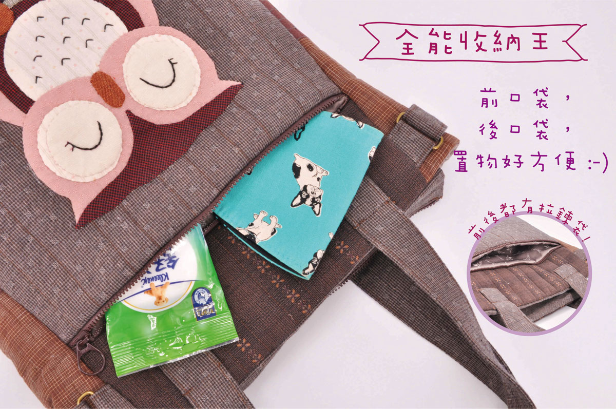 貓頭鷹是森林裡的守護神,她是智慧的象徵,肩背設計,前後有拉鍊口袋,內裡也有夾層,放A4文件收納空間充足。