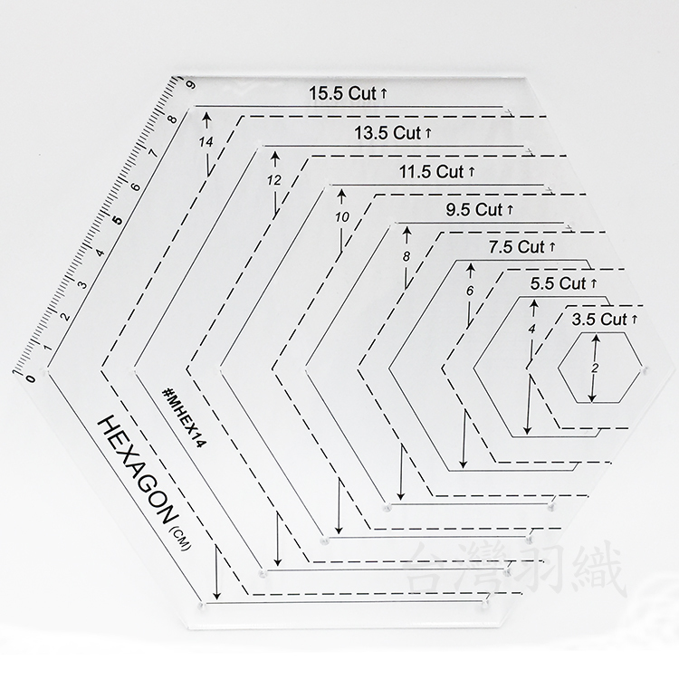 MHEX14 六角形拼布尺(2-14cm)