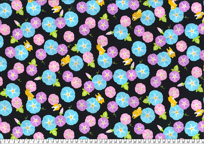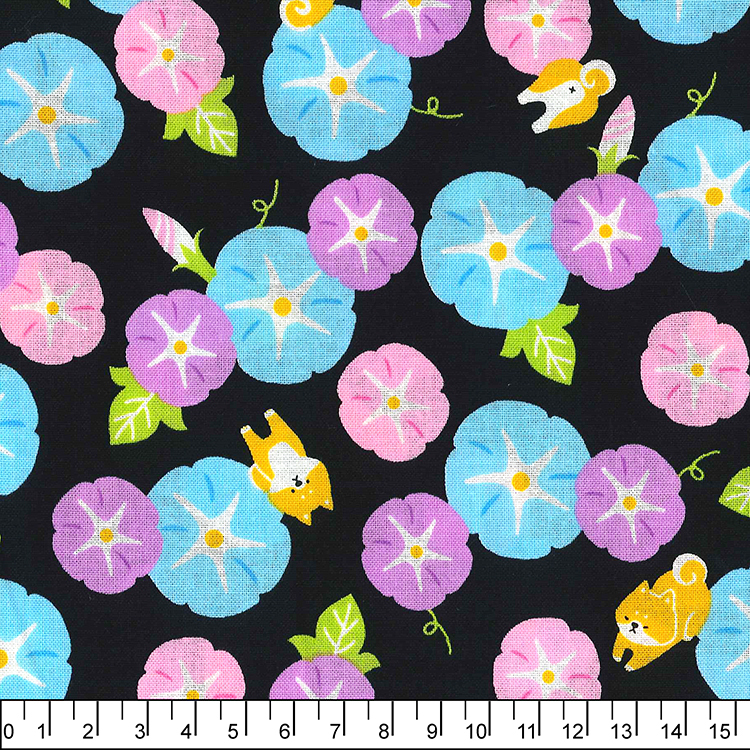 進口棉布R24050003(一尺)牽牛花與柴犬_黑底