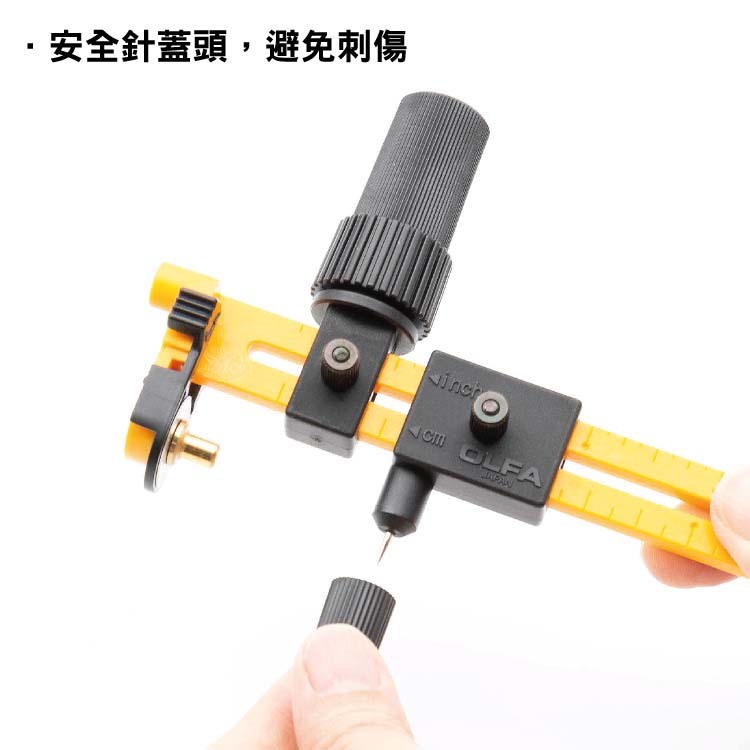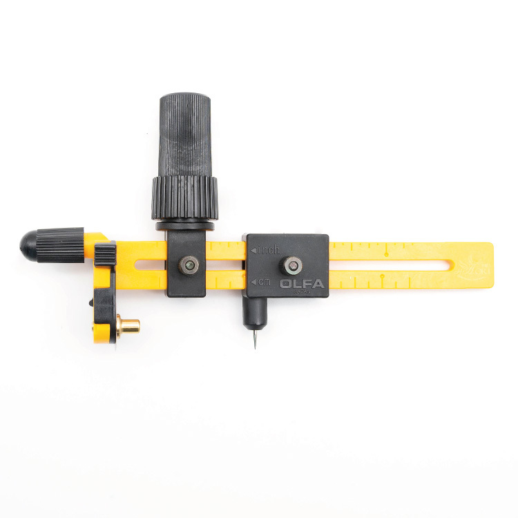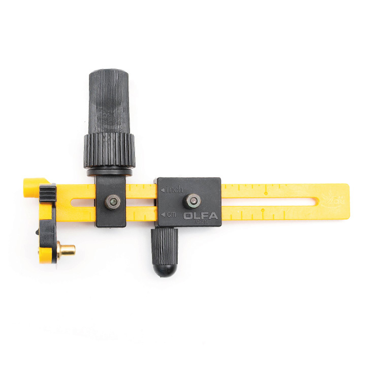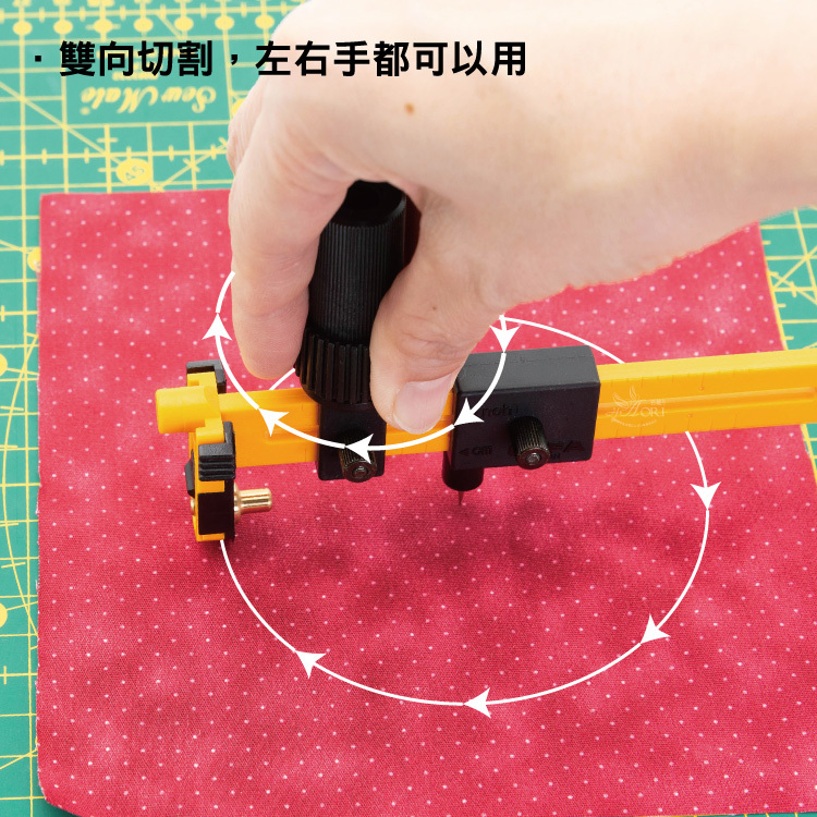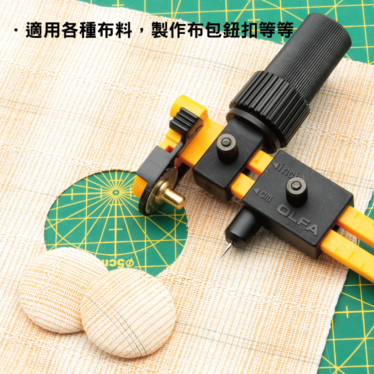 This circular cutter can cut circles with diameters ranging from 4 cm to 22 cm. It can be used for cutting fabric as well as leather.