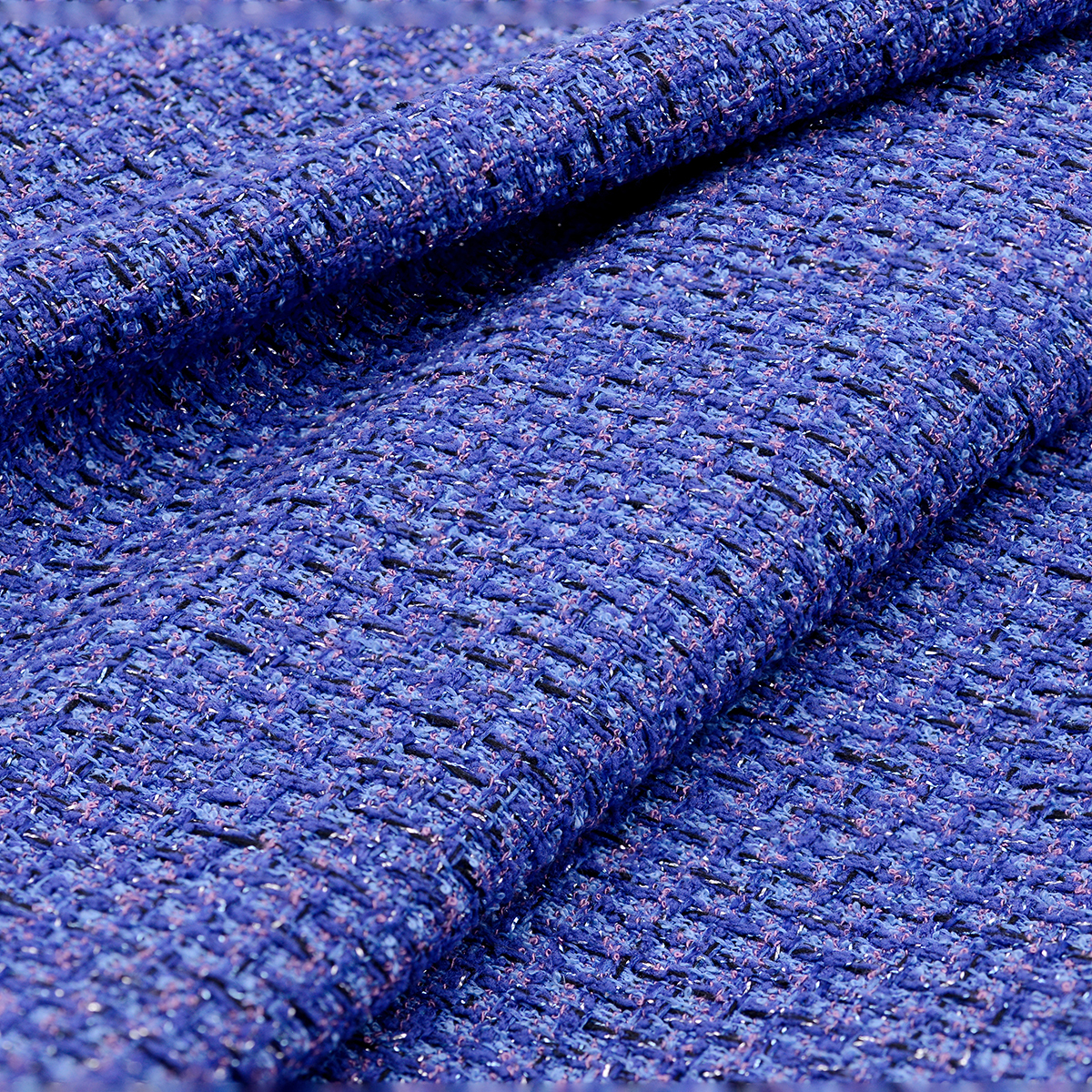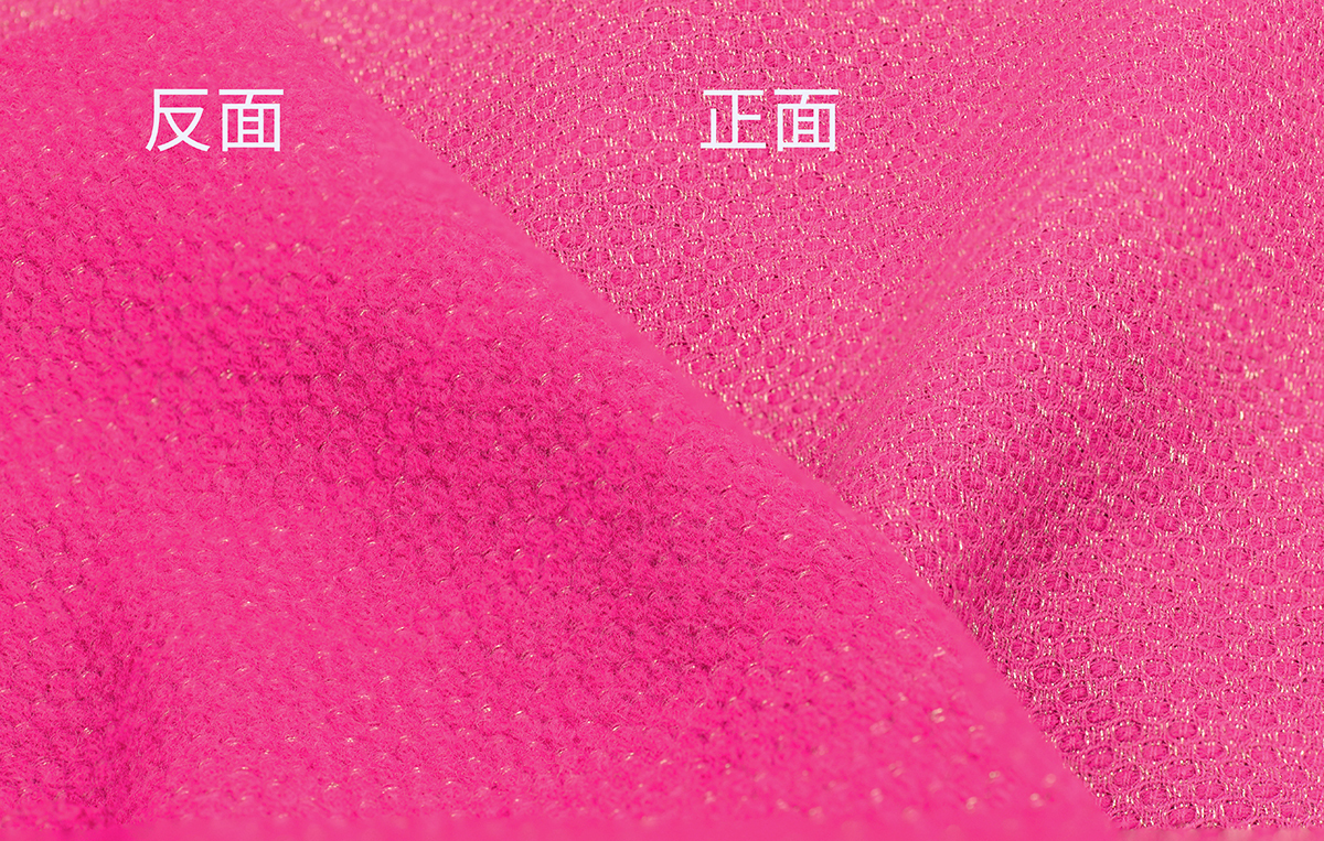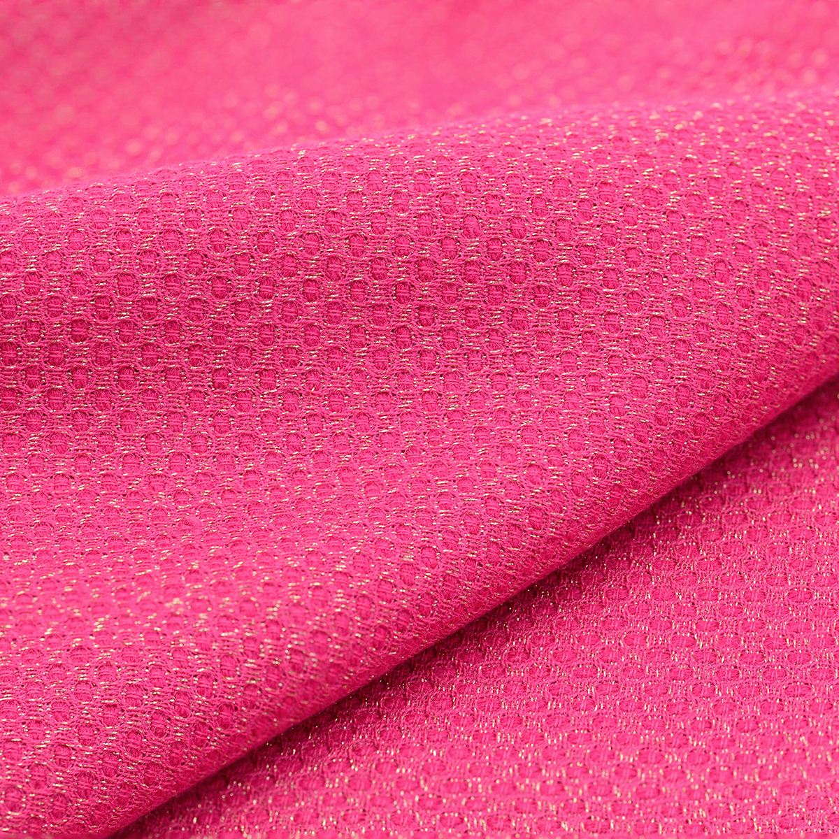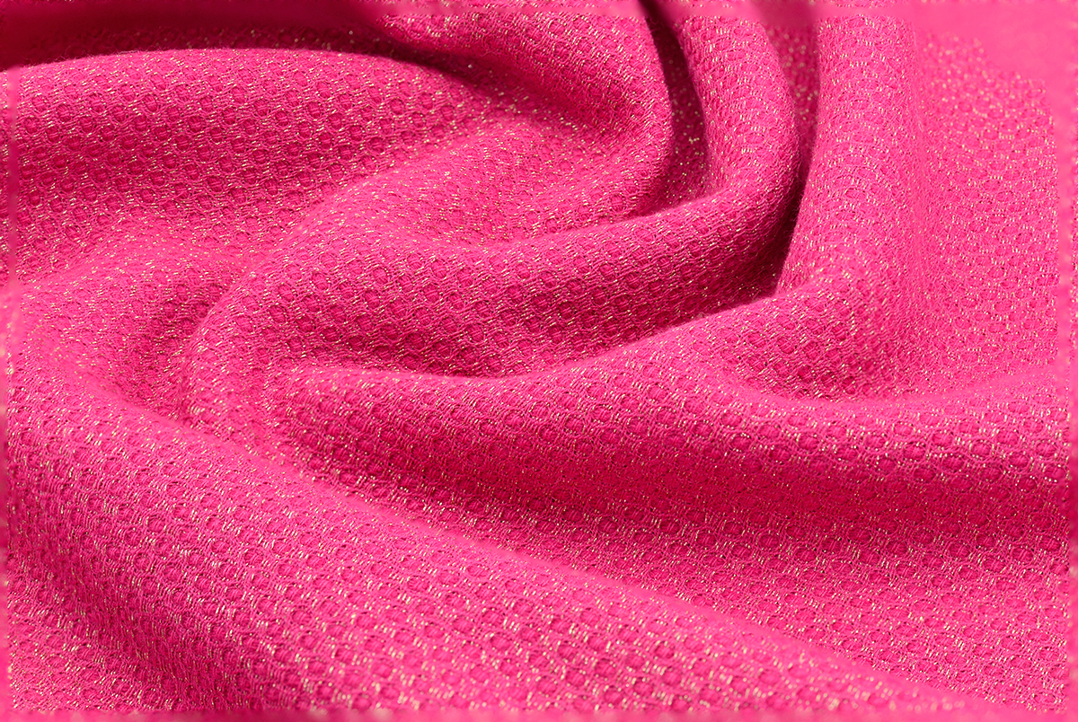 小香風毛尼布料_桃紅色 : 帶有金色的亮澤感,布料較為柔軟。