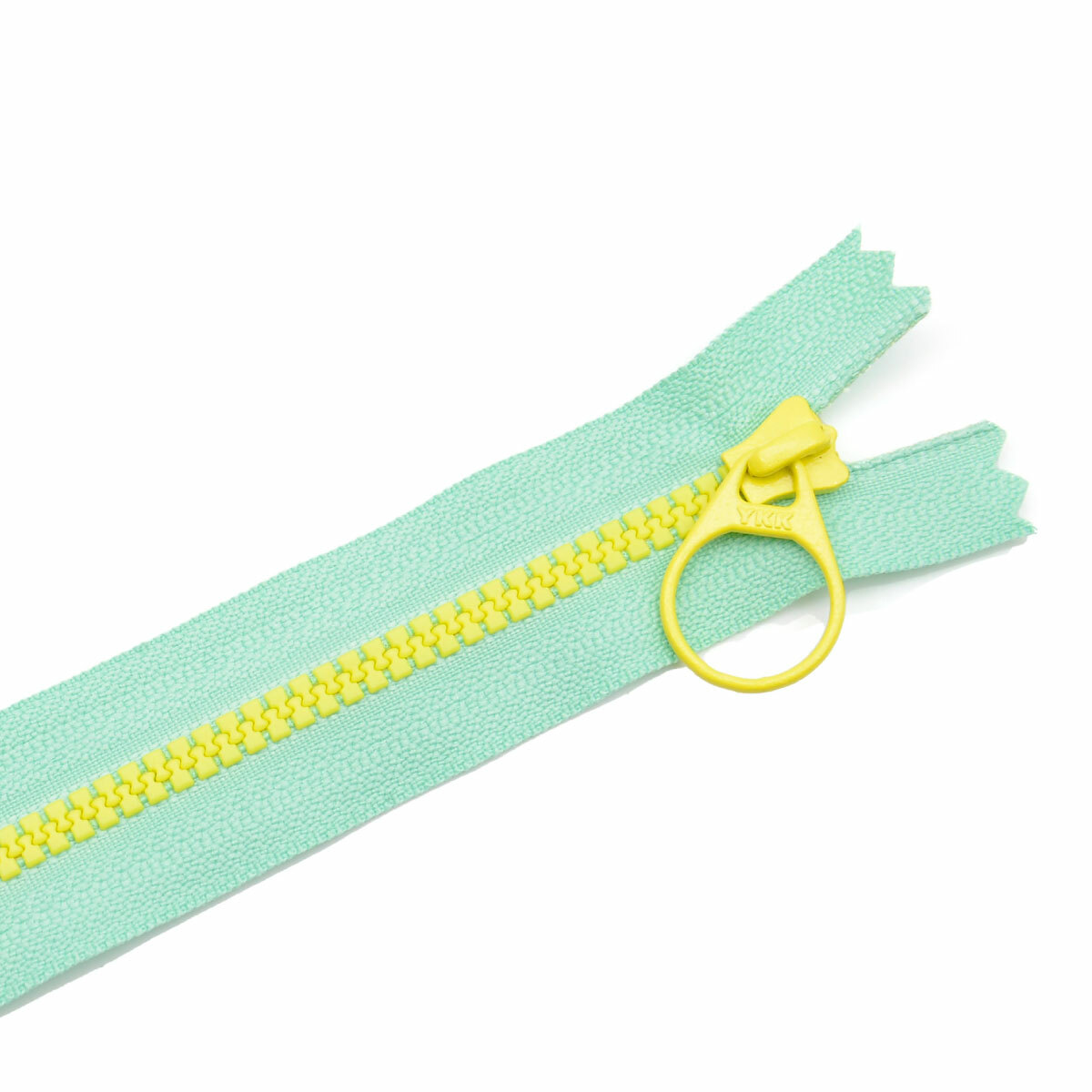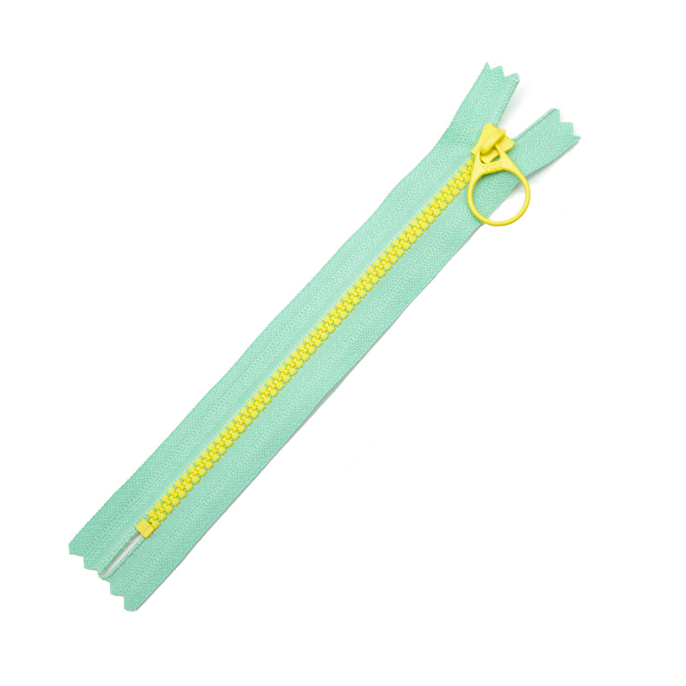【6 / 8吋】3V塑鋼拉鍊(粉綠+黃色齒)_拉環頭