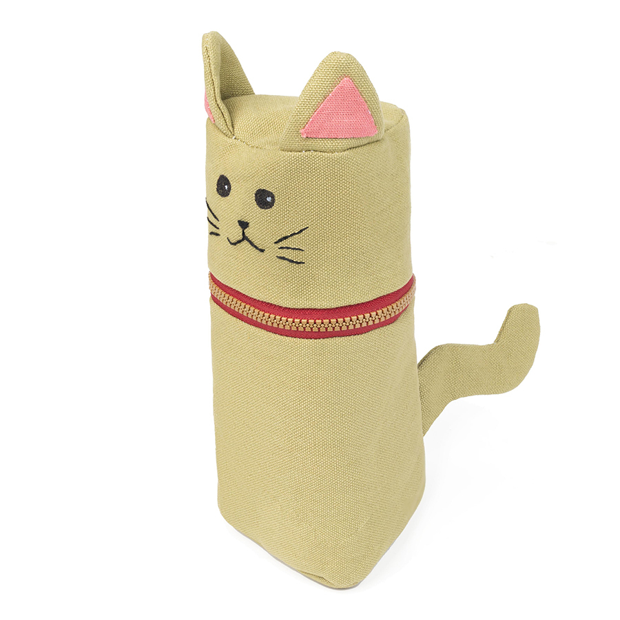 有著尖耳朵、可愛表情的貓咪,脖子掛著小花項圈,還有著立體的尾巴喔。