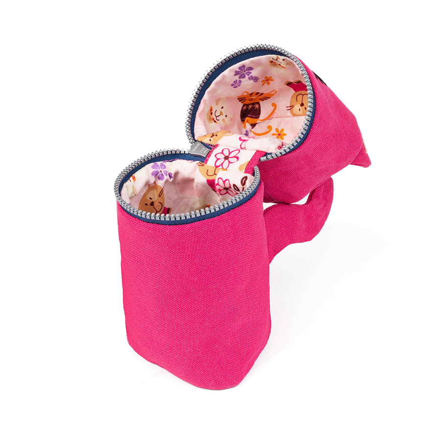 立體的袋型,讓作品可以穩定站立。而環狀拉鍊的大開口,讓您收納、取物更便利。