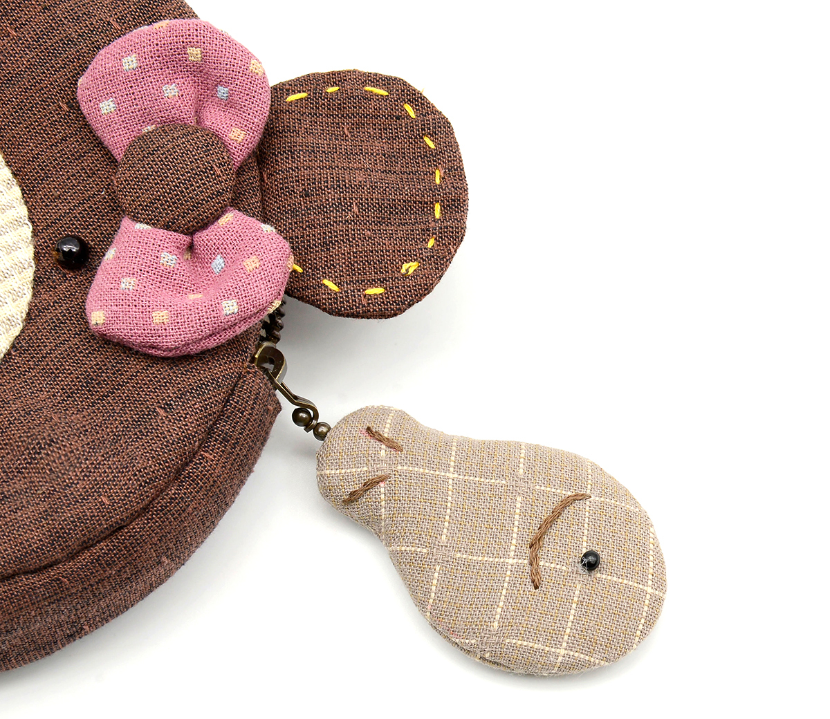 配件:YKK古銅水滴拉鍊、日式包釦、繡線、眼珠子