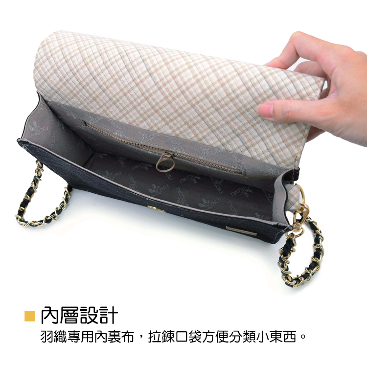 這 款 是 羽 織 第 一 次 推 出 的 時 尚 包 包 款 ,選 用 段 染 還 有 緹 花 的 先 染 布 料 作 為 主 體 ,並 在 袋 蓋 與 側 身 裝 飾 條 選 用 段 染 加 緹 花 格 子 布 料,讓 整 體 包 款 走 向 年 輕 時 尚 系 列.