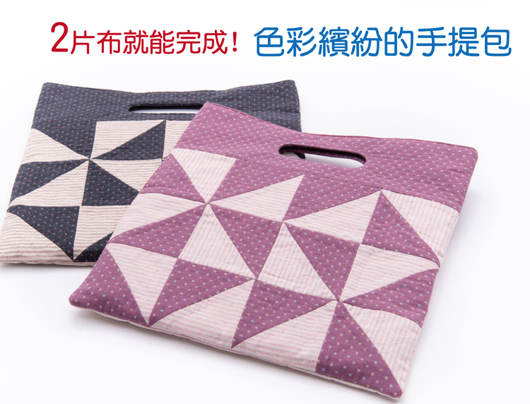 拼布圖案:雙色、三角型布片,教你完成「風車」、「漏斗」的造型拼布。