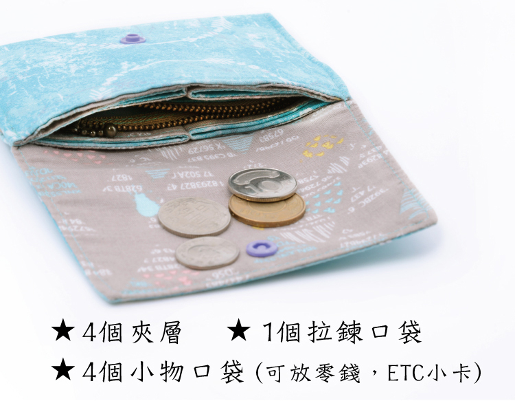 ★ 多夾層口袋:有四個獨立卡袋、拉鏈零錢包、還有鈔票口袋,讓你收納物品更井然有序。