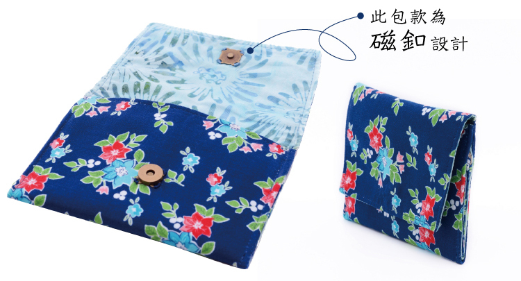 材料包裏內含 : 所有製作布料(表布裡布皆採進口棉布)`及配件,一個材料包會附塑膠扣和手縫磁釦兩種釦子,依個人需求使用,塑膠扣需要工具組裝喔!