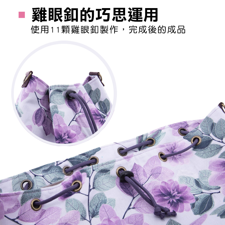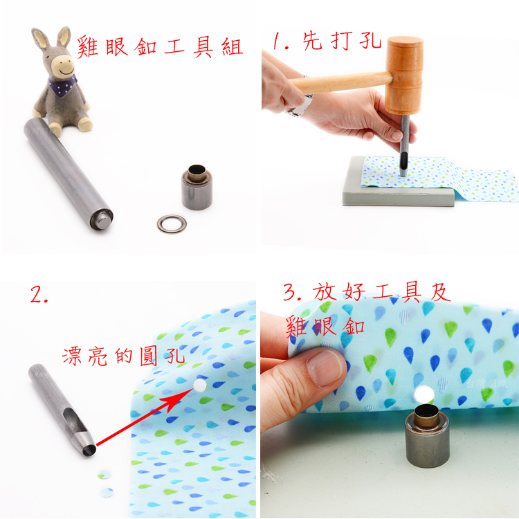 每個材料包均附有12顆雞眼釦,製作此包包需要17mm的雞眼工具+打洞工具,有需要工具和墊板的朋友,請在加購區購買喔!