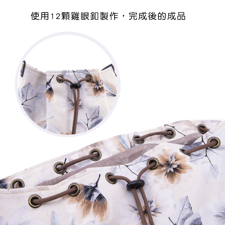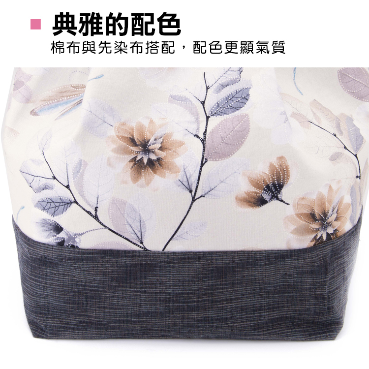 採用進口棉布植物花樣棉布料,搭配緞染的先染布,呈現清新脫俗的搭配效果。