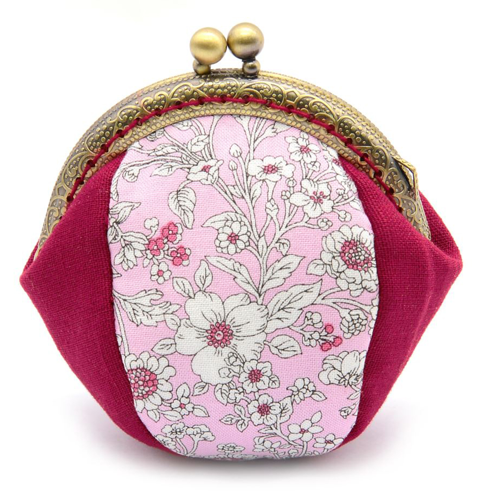 這是難度稍微較高的四片拼接口金包零錢包,這個零錢包我們可以學習如何讓四塊布片在底部接合,化成底部尖尖,側邊圓弧的造型。再配上口金,看起來是不是很像桃子呢?
