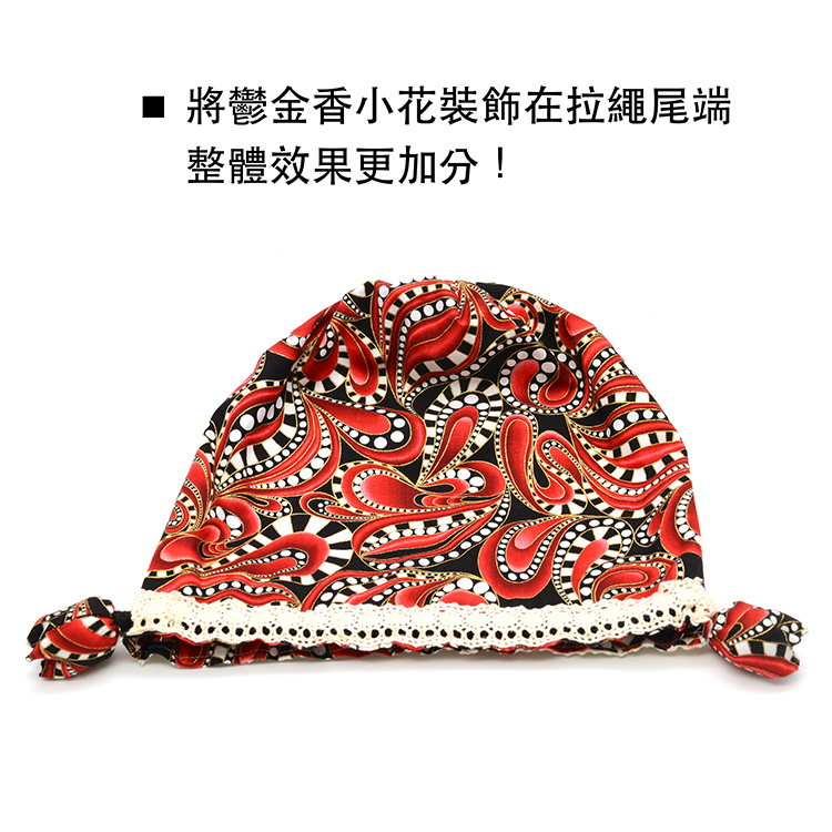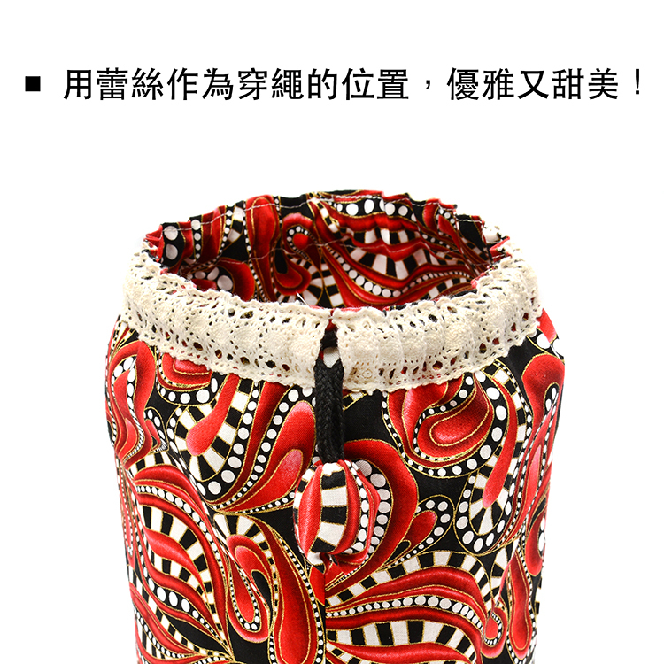 *穿繩位置:先前是在布上預留空間,這次改用蕾絲或緞帶作為穿繩的位置。